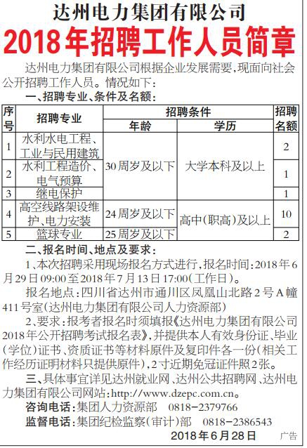 達(dá)州電力集團有限公司根據(jù)企業(yè)發(fā)展需要,現(xiàn)面向社會公開招聘工作人員